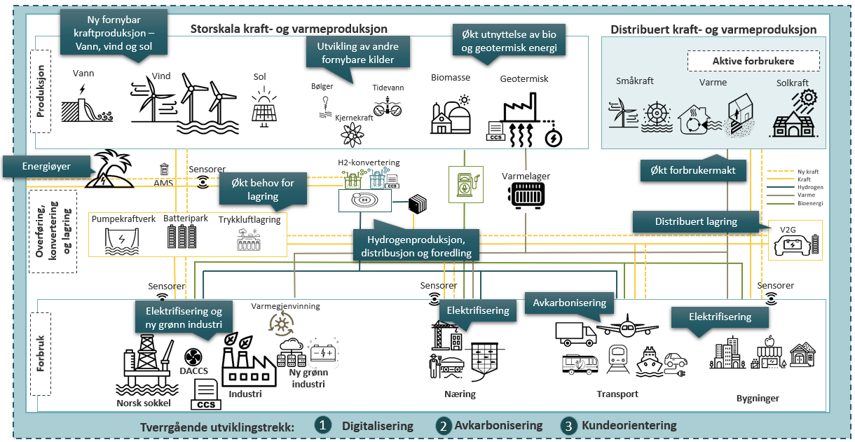 - Gjennomgang og beskrivelse av makrotrender som påvirker utviklingen i energisystemet